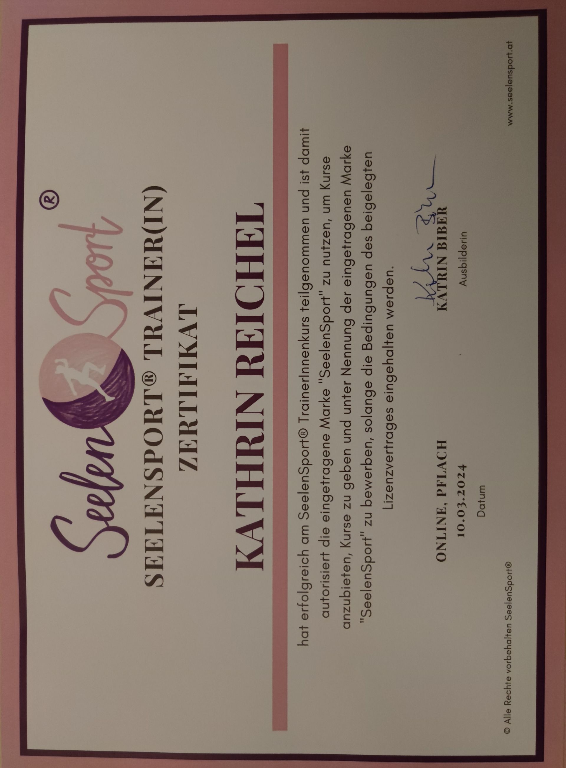 Abschluss-Zertifikat & SeelenSport®️-Lizenz 2024